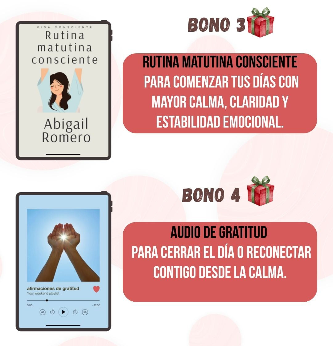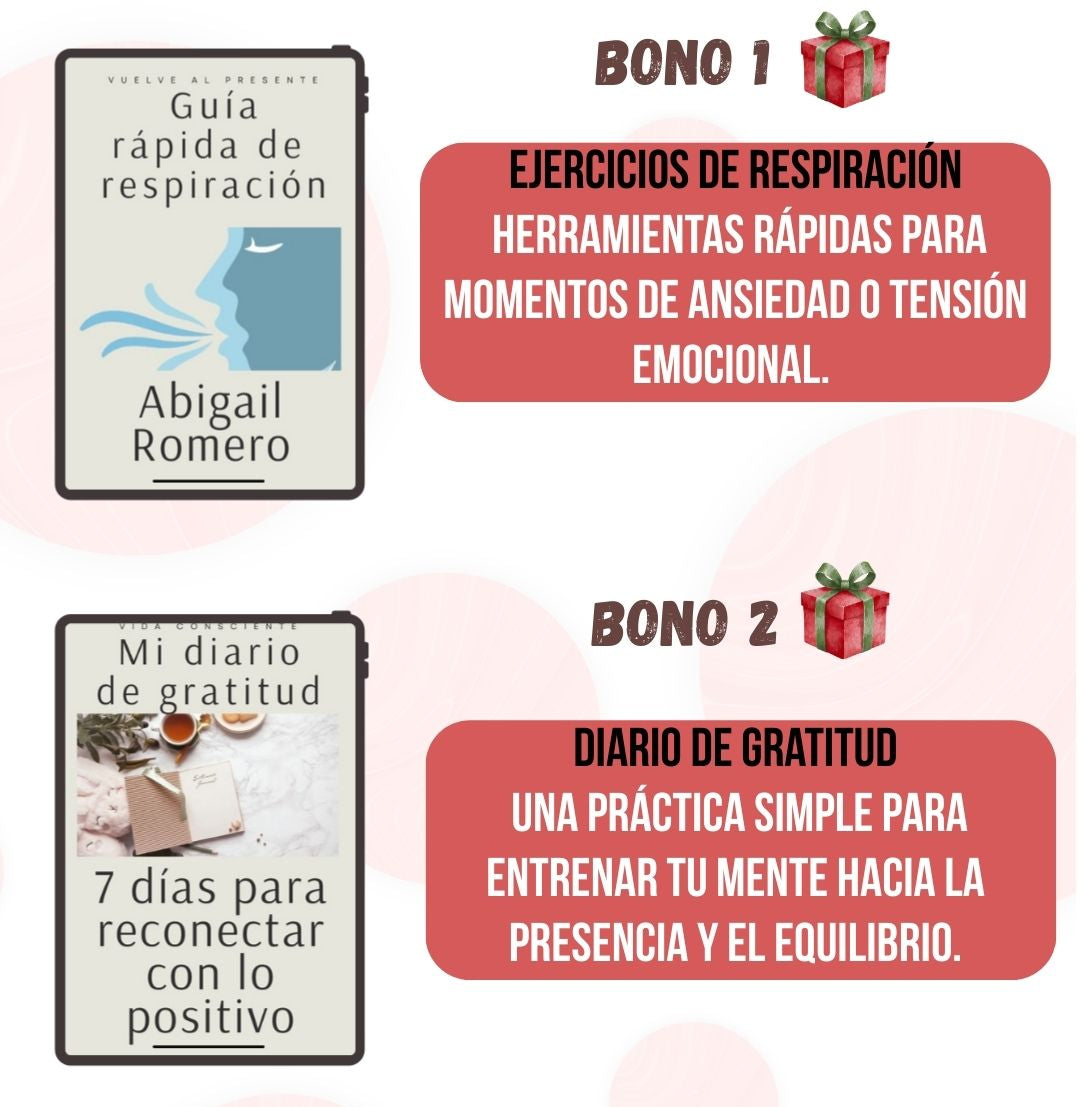 ¡Sí! Hoy tu compra incluye 4 bonos y 2 regalos complementarios para reforzar tu aprendizaje y profundizar en tu desarrollo personal.